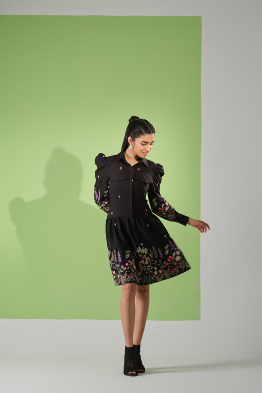 Noir Blossom Shirt Dress