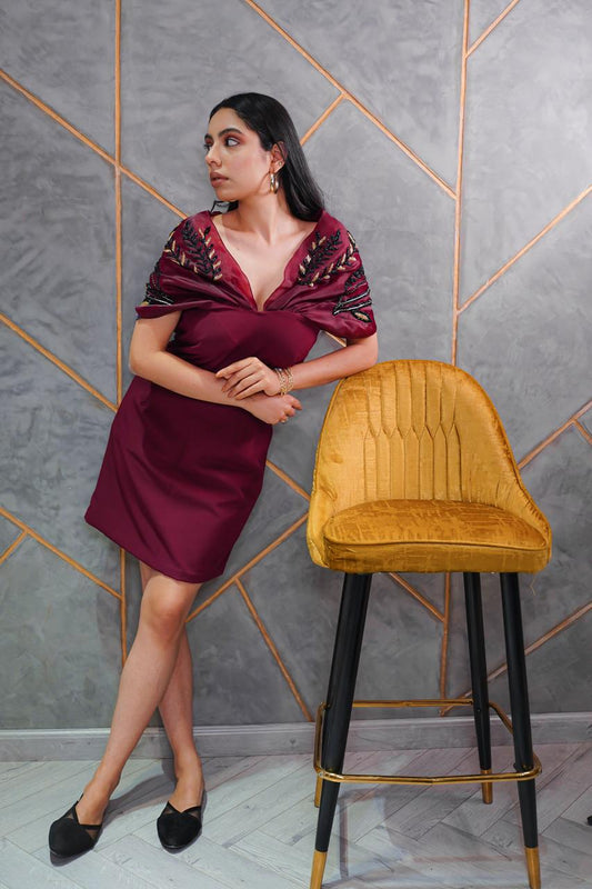 One-Shoulder Ruffle Hand-Embroidered Co-Ord Set