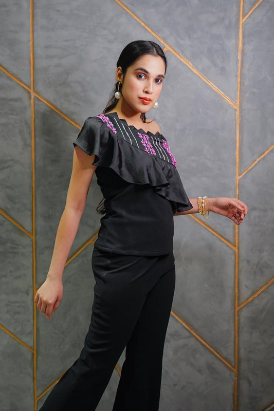 Midnight Ruffle Hand-Embroidered Co-Ord Set